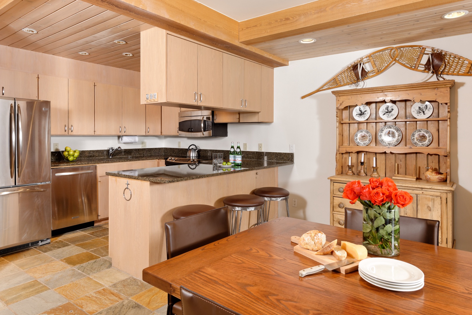 Step inside to an inviting open-concept living and dining area designed for relaxation and togetherness. The cozy living room features ample seating and mountain views, while the adjacent dining area comfortably accommodates family and friends. The fully equipped kitchen boasts modern appliances and a functional layout, perfect for preparing meals after a day on the slopes or trails.
