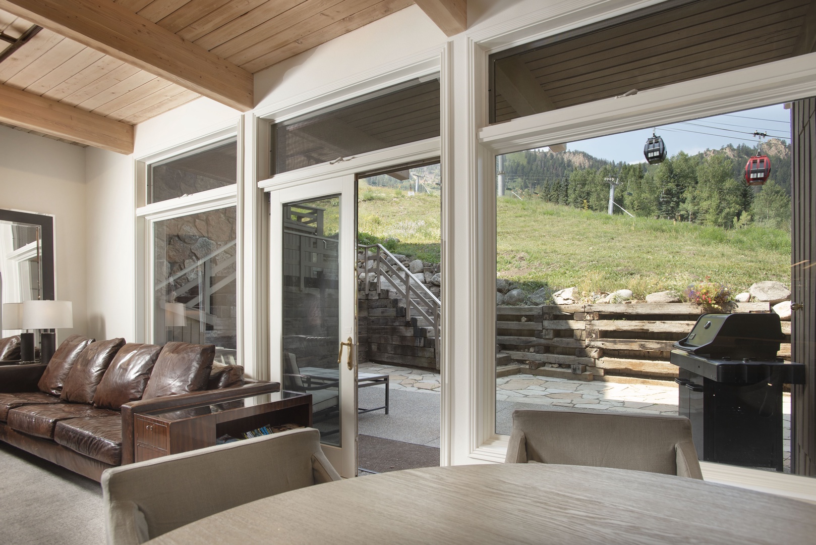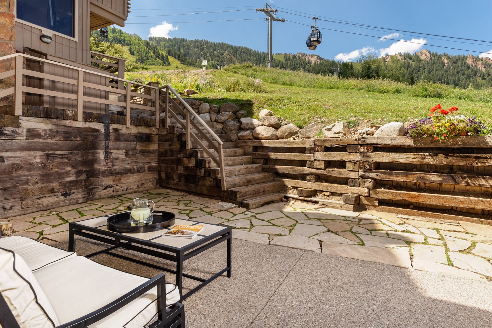 Step outside to the private patio to enjoy fresh mountain air and sweeping views of Aspen Mountain—perfect for morning coffee or après-ski relaxation.